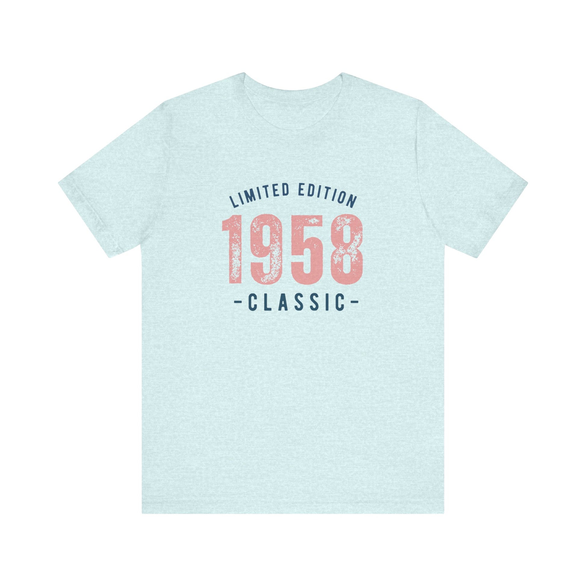 Dathlwch rywbeth gwreiddiol go iawn gyda'r Crys-T Clasurol Rhifyn Cyfyngedig 1958 hwn — oherwydd gwnaed chwedlau yn '58. Gyda dyluniad trawiadol amserol mewn cwrel meddal a llynges, mae'r crys hwn yn cyfuno steil hen ffasiwn yn berffaith â chysur modern.