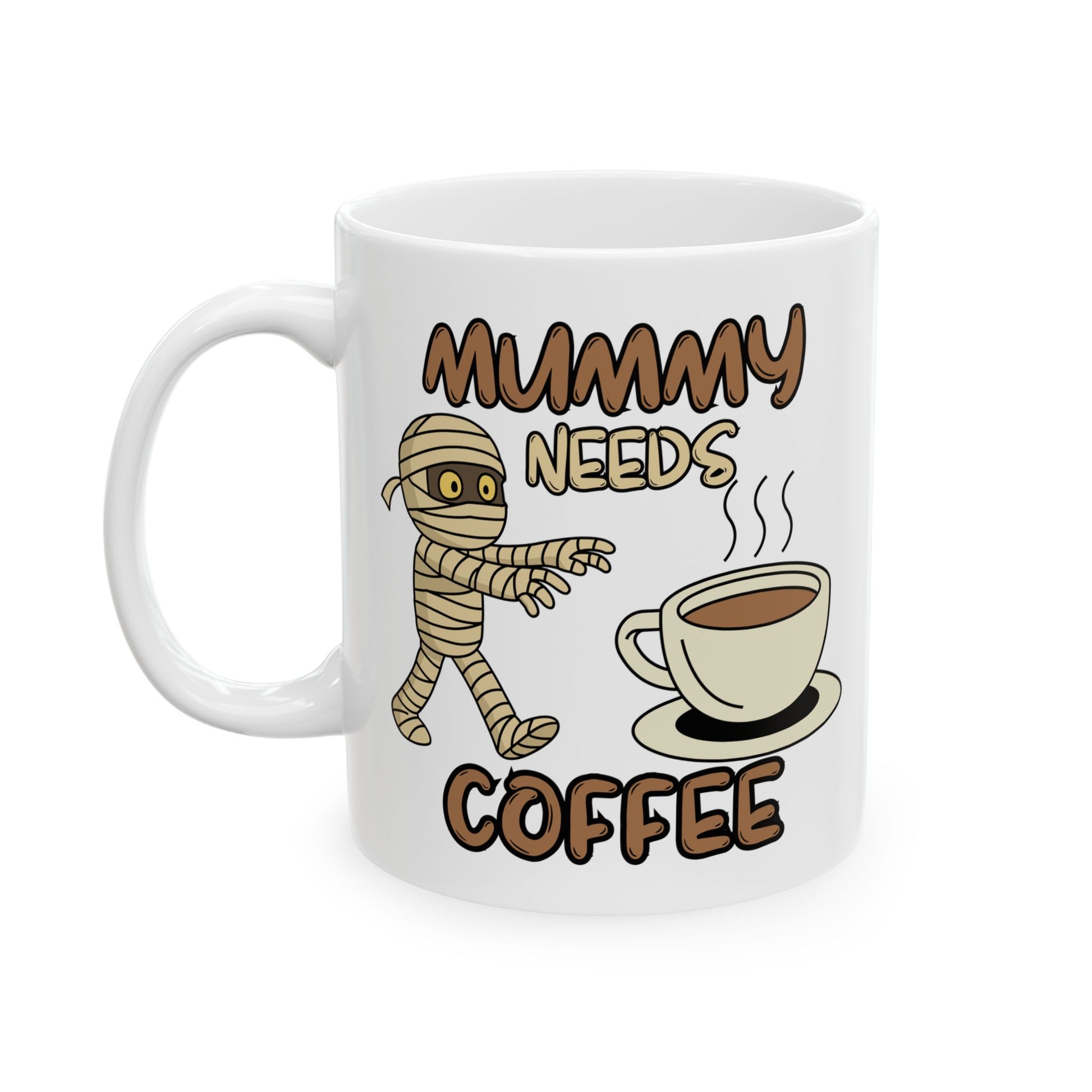 Dewch â chwerthin i'ch trefn foreol gyda'r Mwg Coffi Angenrheidiol hwn! Yn cynnwys mami cartŵn giwt yn baglu tuag at gwpanaid o goffi stêm, mae'r mwg hwn yn dal yn berffaith sut mae'r rhan fwyaf ohonom yn teimlo cyn y sip cyntaf hwnnw.