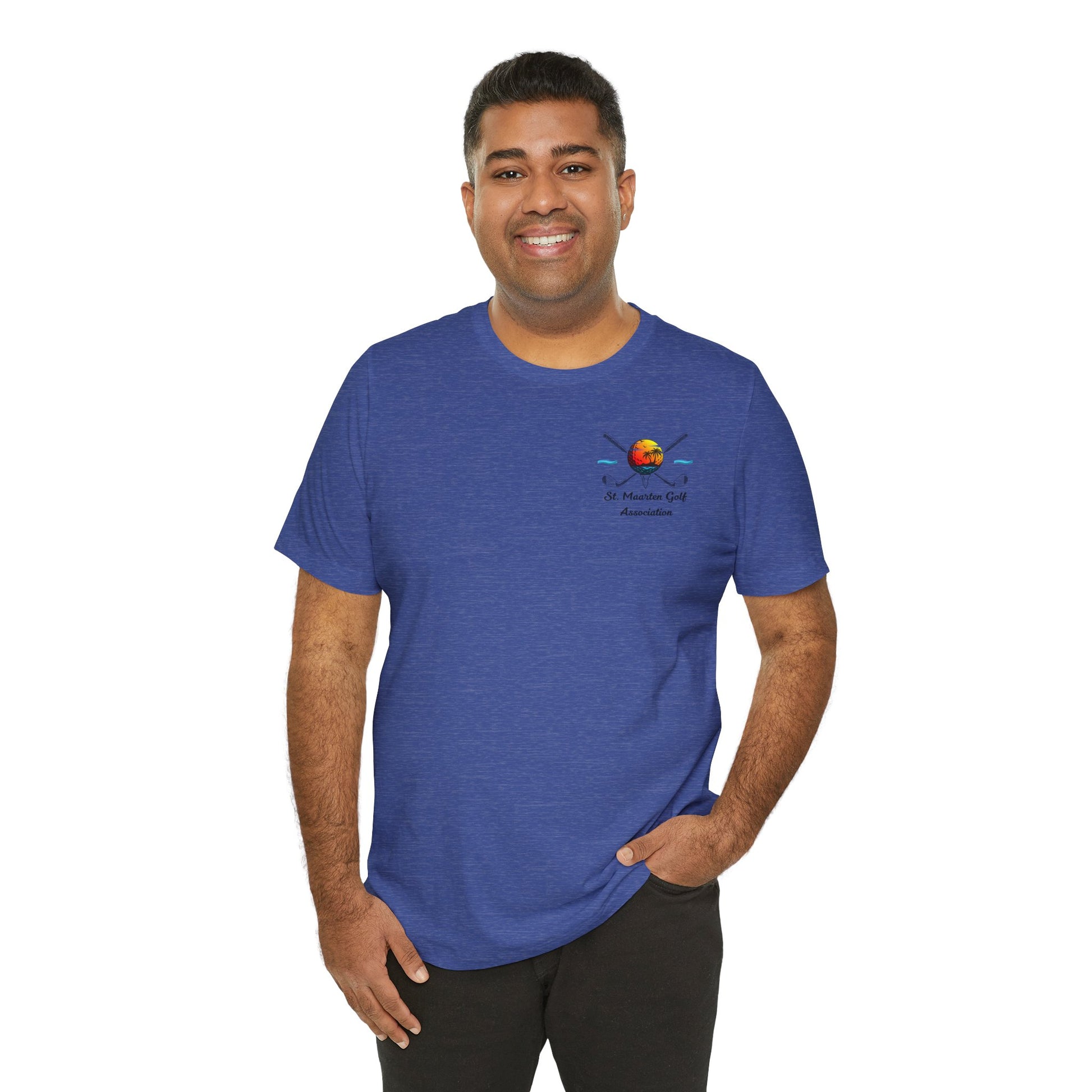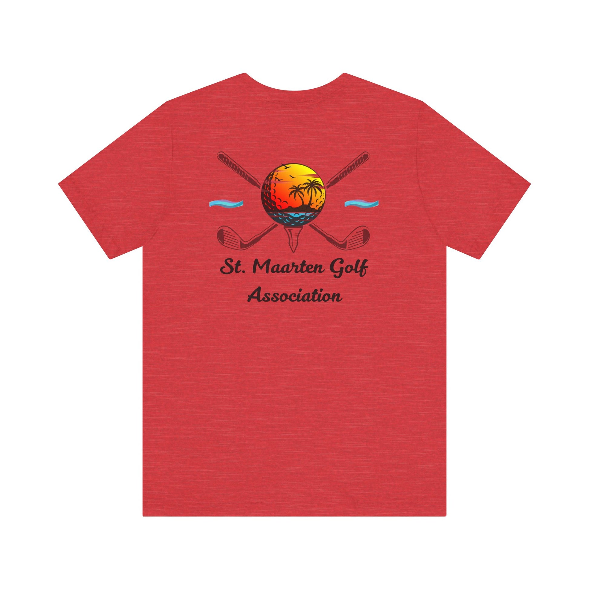 Dangoswch eich balchder ynysol a'ch cariad at y gêm gyda'r crys-t Cymdeithas Golff St. Maarten hwn. Yn cynnwys y logo swyddogol gyda chlybiau wedi'u croesi a machlud haul trofannol, mae'r crys meddal cymysgedd cotwm hwn yn darparu cysur trwy'r dydd ar ac oddi ar y cwrs.